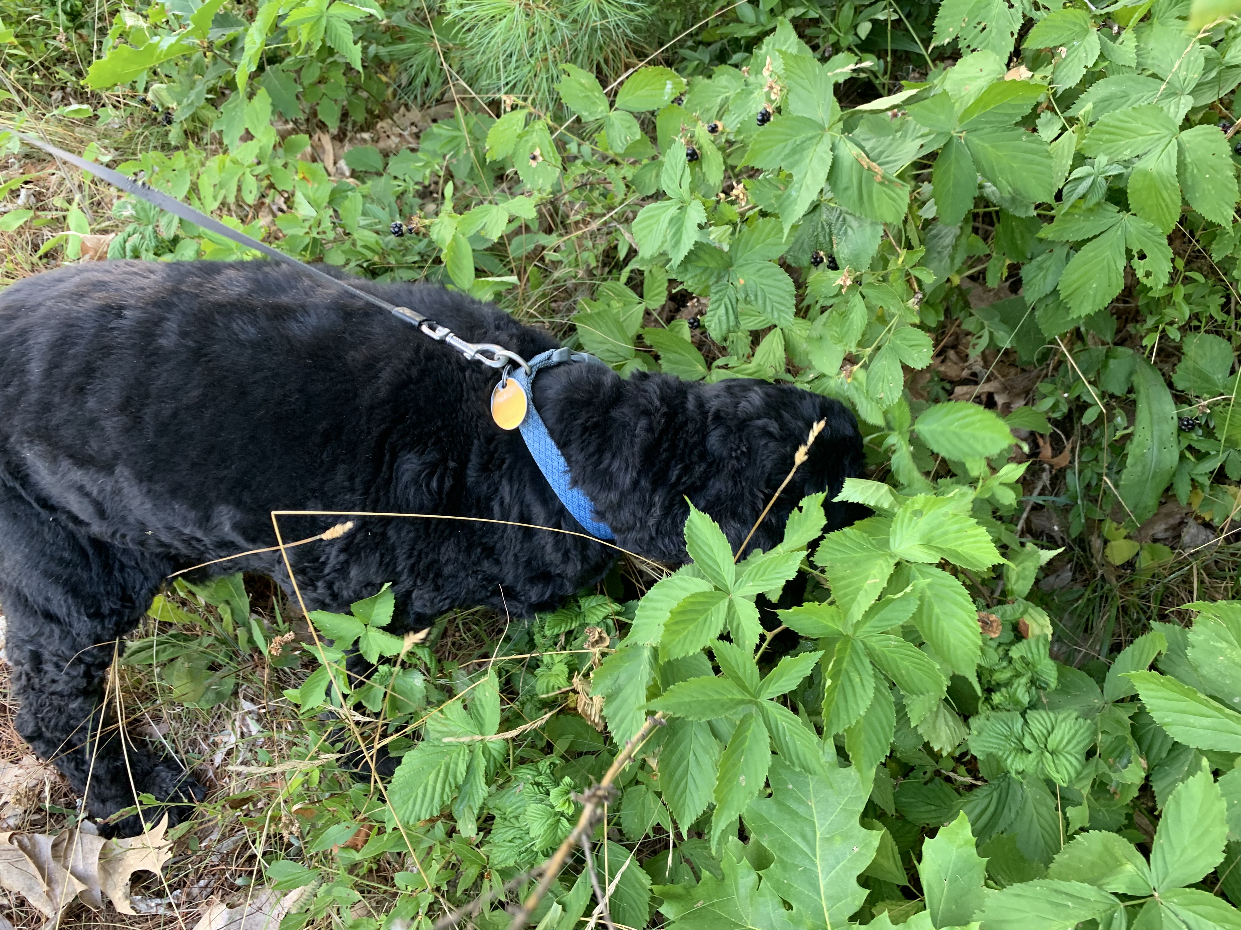 We went to a campground where there were hills and no sandy beach. We hiked up a hill on a long narrow trail to the top of a hill- and I made did it with no problems- although my people did NOT bring me any snacks, can you believe that? Along the way down, I did stop to smell the roses…what? wait, those are not roses, but anyway, I did stop and pose.