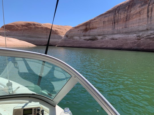 We rented a boat one day to explore the Lake- motored up three canyons to see the sitghts. Weather turned hot while we were there- high 80s and breezy.
