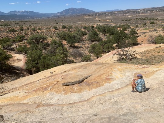 Poor Rhylee’s old age is catching up with him, and so he is very content to snooze in the AC in the camper and take a couple of walks around the campground each day. But we did take him up to the La Sal Mountains and got him groomed while we were here.