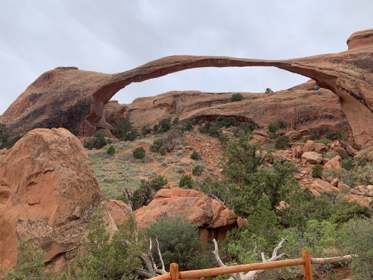 Moab, Utah- the Adventure Capital of the southwest and probably even further afield! This place is full of people, activities, ATVs, people, and why? to see the rock formations! We are glad to see so many people out exploring our National Parks and nature in general, truly, we are 😉 just wish it wasn’t on the days we are out here 🙂 Arches National Park has over 2000 of their own arches- however getting in to see them is a challenge. After a year of being cooped up due to Covid, this area is fuller than ever! They close the park between 9 and 10 every day, once it is full, and re-open it mid-afternoon. We met a couple that hiked to Delicate Arch by 4am and only had about 20 mins before it was bustling- 4AM!! Crazy! Our first day heading to Arches, we got to the entrance at 7:50am and had to wait 30 mins to move up the line to get in. Every parking lot was almost full at every overlook, arch and hike all the way in. We headed to Devils Garden and got one of the last parking places. We hiked to three Arches- Landscape, Pine Tree and Tunnel.