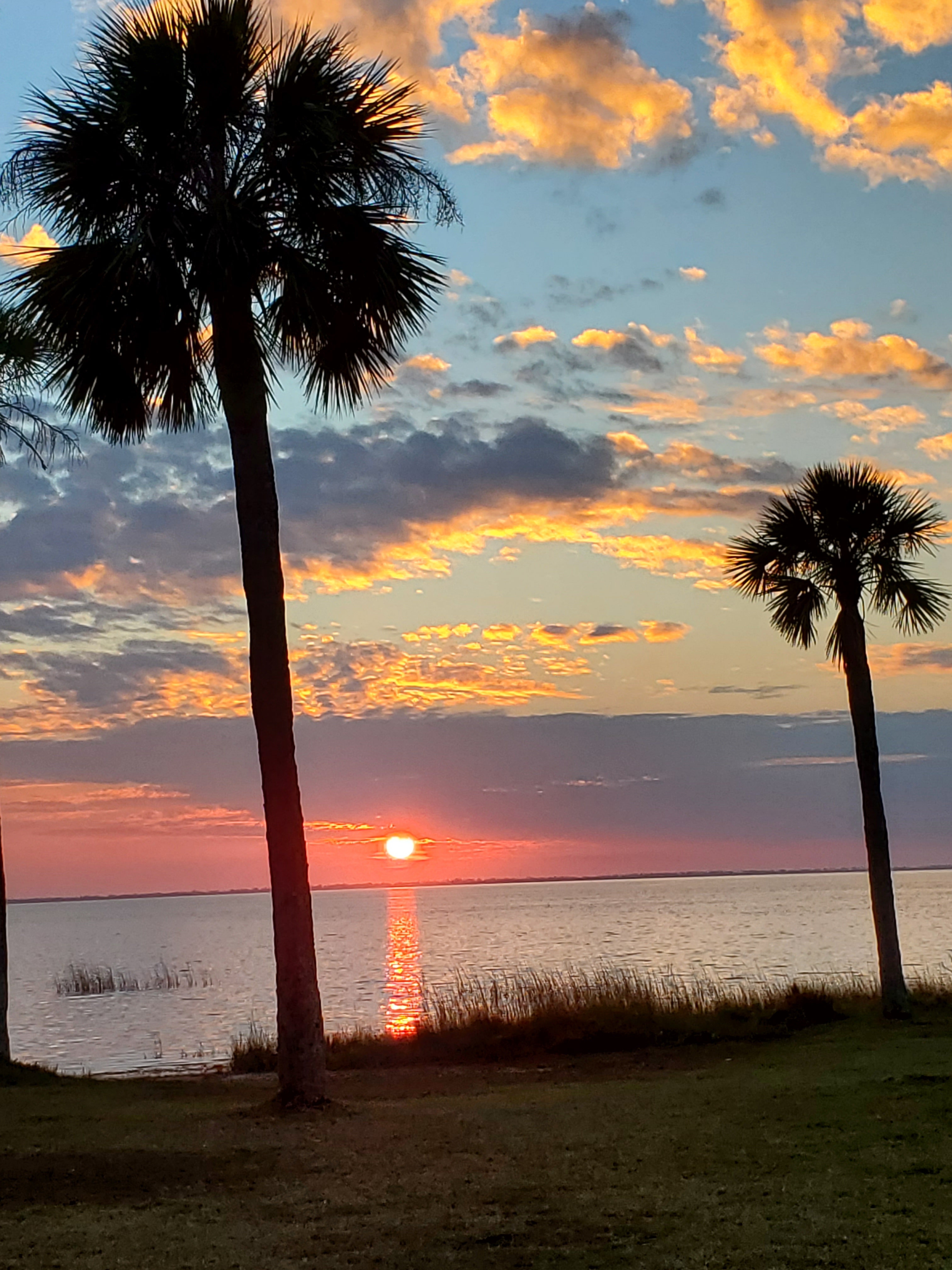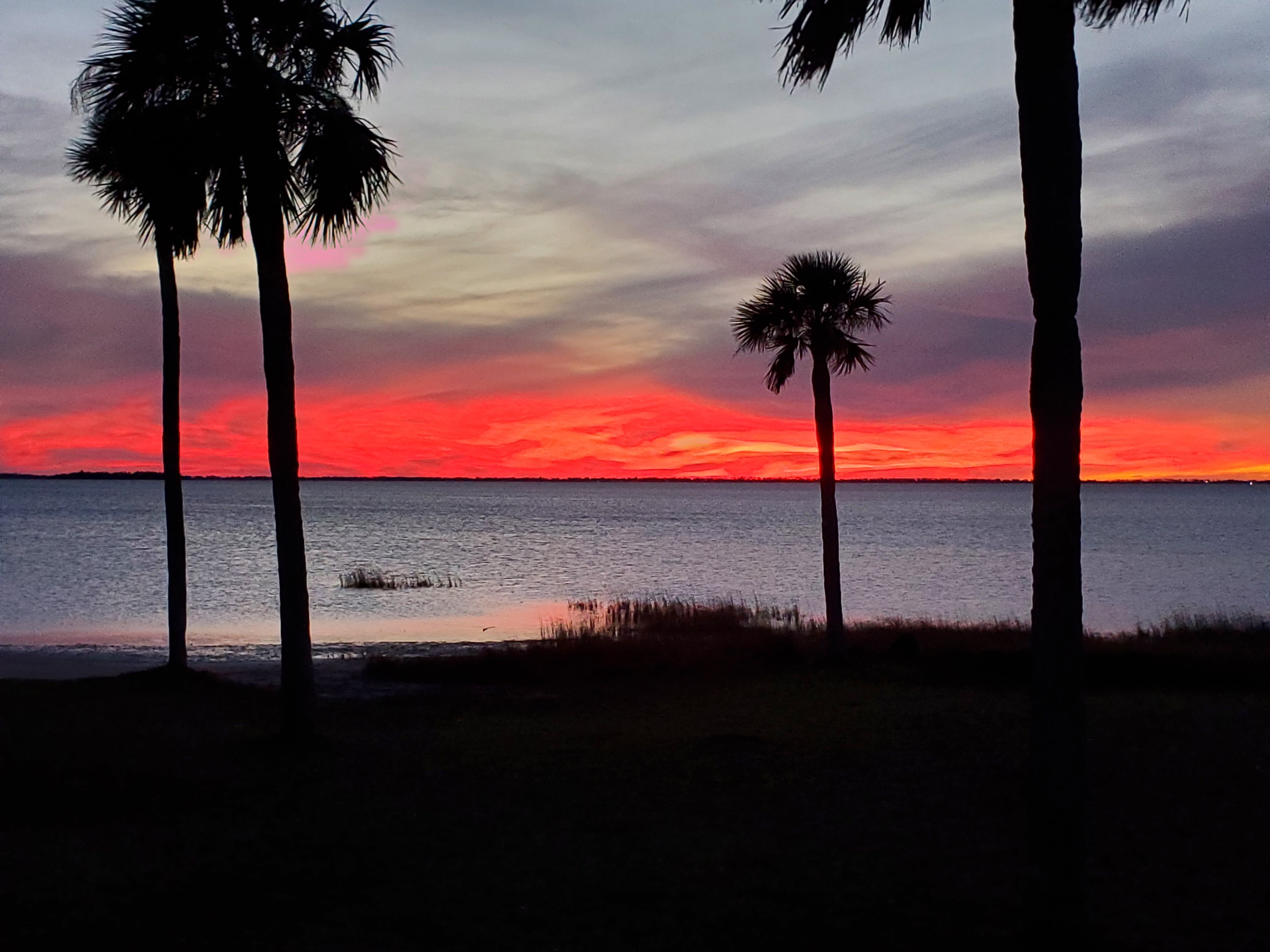 Pickleball, trap shooting, walking the beach, and…..sunsets- many nice sunsets. We have to laugh though- our RV site is just a stone’s throw to the water, so many people come down this way to watch the sunset… and leave a minute or two after sunset, which generally is just a big orange blob dropping below the horizon. THEN, 10-30 minutes later, on an evening when there are a few clouds in the sky, the show really begins- take a look: