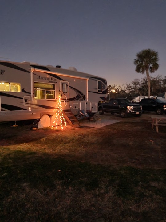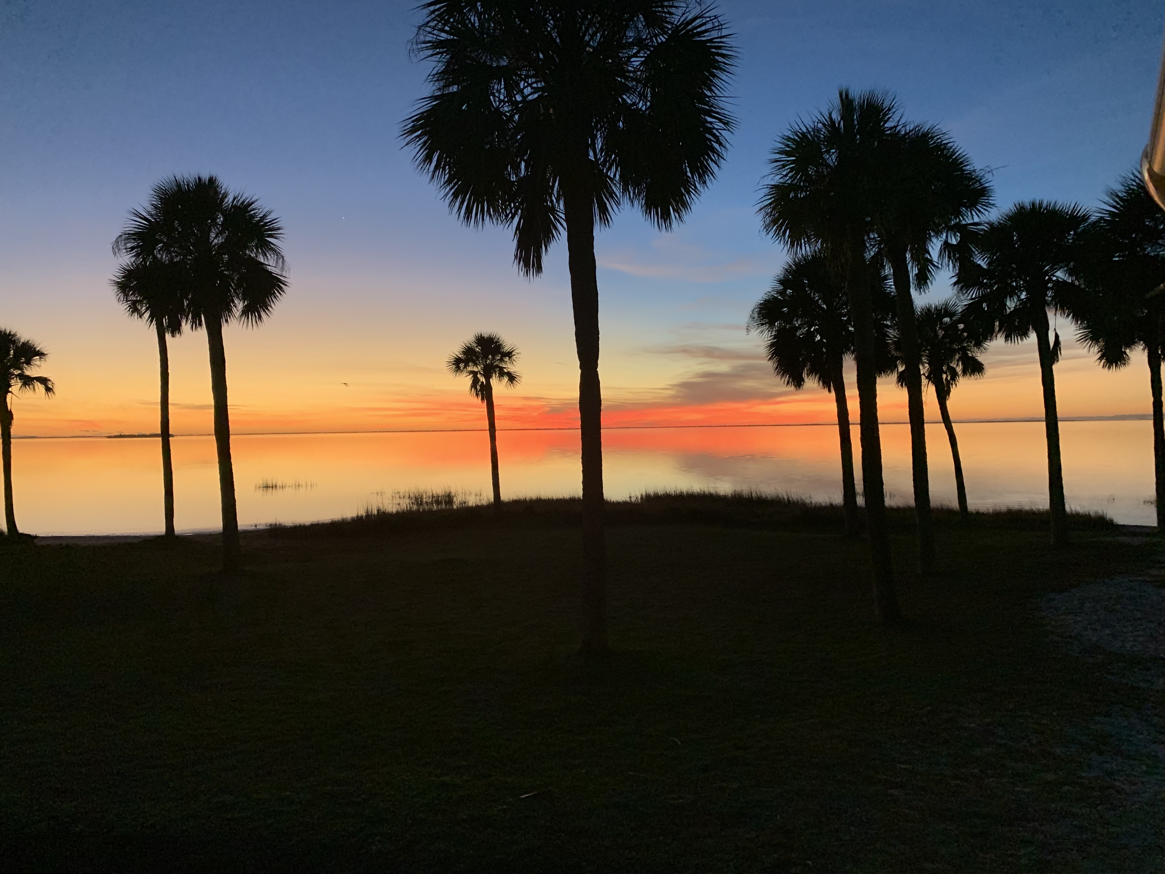 Our Camper sits about 50ft. from the shore of St. Joe Bay. We rarely miss a sunset 🙂