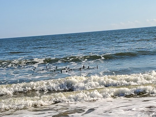 Mergansers and Ibis are frequently just off our shore area; white and gray herons and egrets are plentiful, too and the stray eagle. Learned about Greater and Lesser Scaup from a birder at the beach.