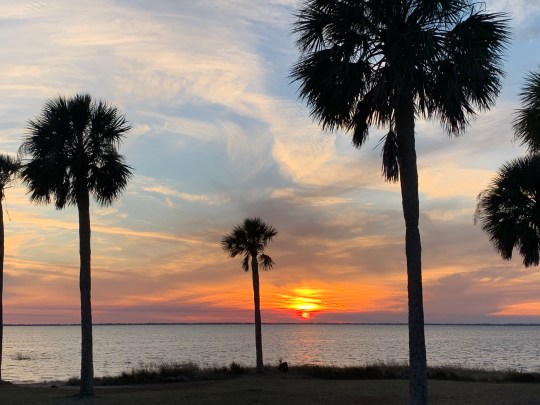 There have been huge forest fires (and neighborhoods burned down and/or evacuated) in Panama City, as well as north and west of here. The fuel is standing dead pine trees from Hurricane Michael in 2018- THOUSANDS of standing dead trees! We are fine here, more humid and swampy along the very coast. Heading slowly north the end of the month.